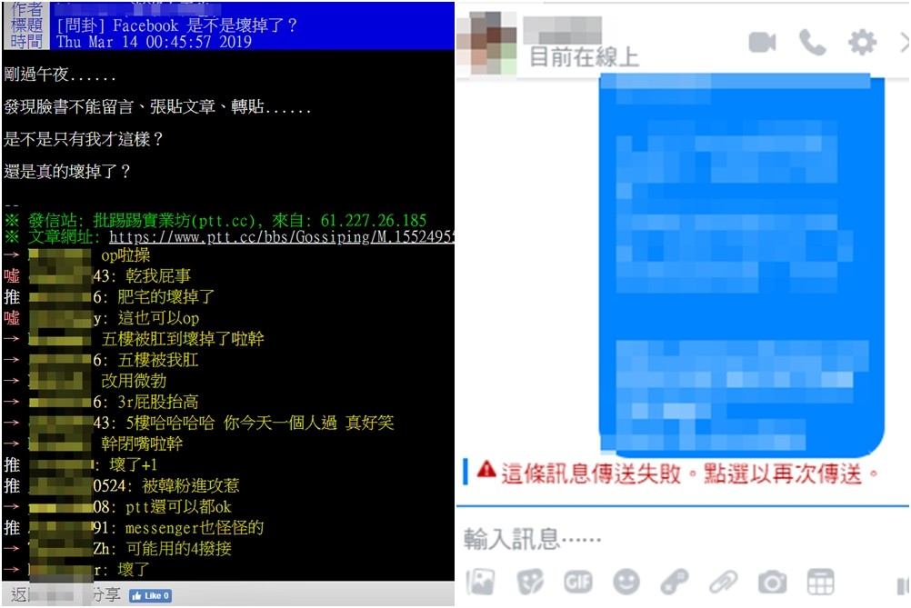 臉書當機 ptt. PTT到目前已當機約14小時圖片擷取自批踢踢實業坊Pttcc臉書 圖片擷取自批踢踢實業坊Pttcc臉書 20171031 1111. 我看新聞底下的留言都沒出現 就開FB 再上PTT 果然啊 0409 0540. 路透社 臉書FacebookInstagram 又傳災情14 日約下午 6 時 40 分時全 球大當機頁面完全無法重整不過部分用戶仍 能透過手機連上臉書大當機原因不明仍待官方查證 另外根據 downdetector 統計臉書當機情形除了台灣 歐洲菲律賓等地也傳出嚴重災情台灣網友也在 PTT 上 分享災情許多人回應原來不是只有我我想說明明 今天繳完電話費怎麼跑.